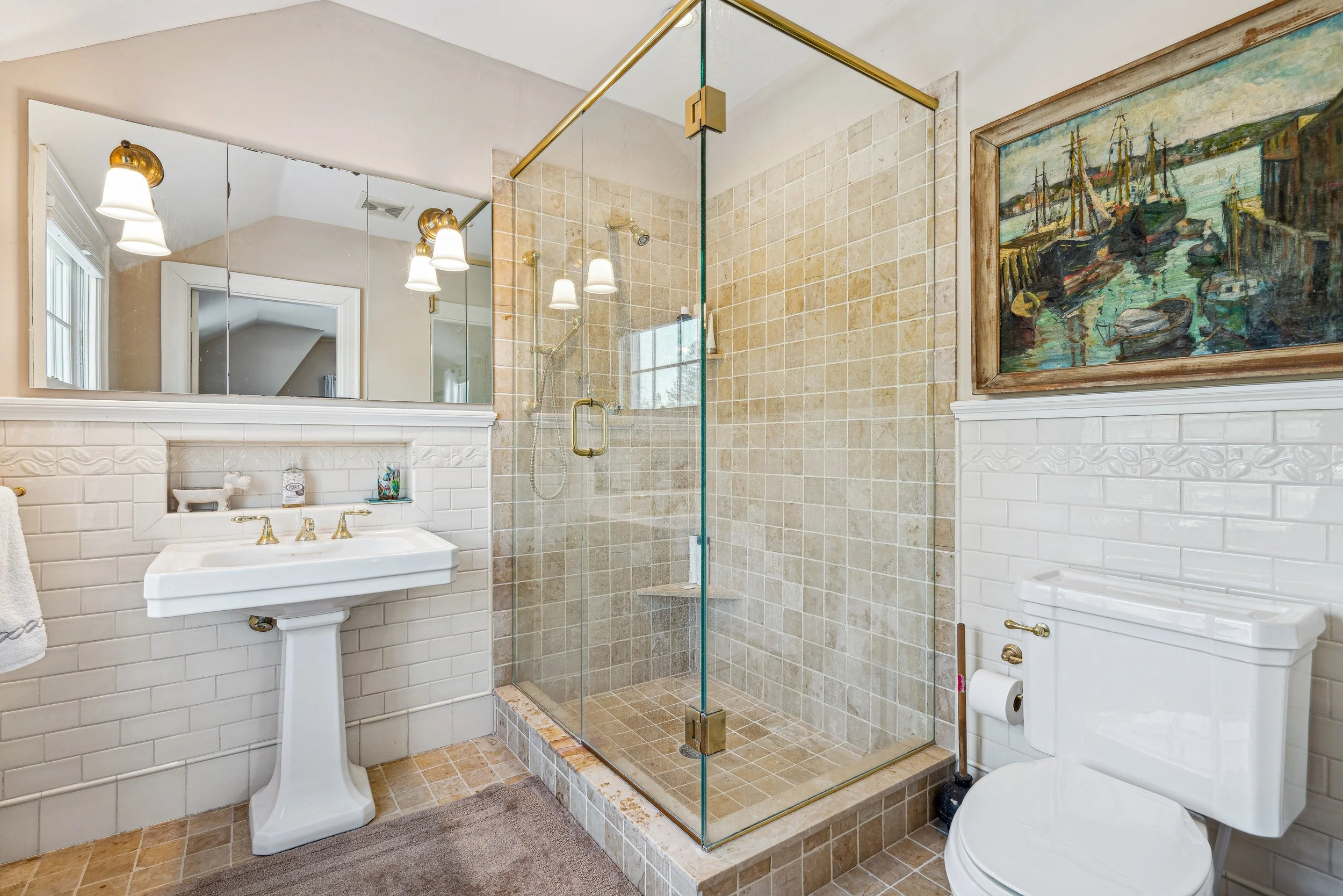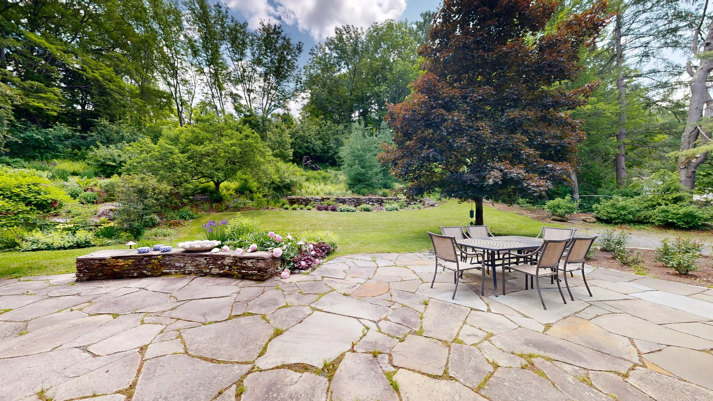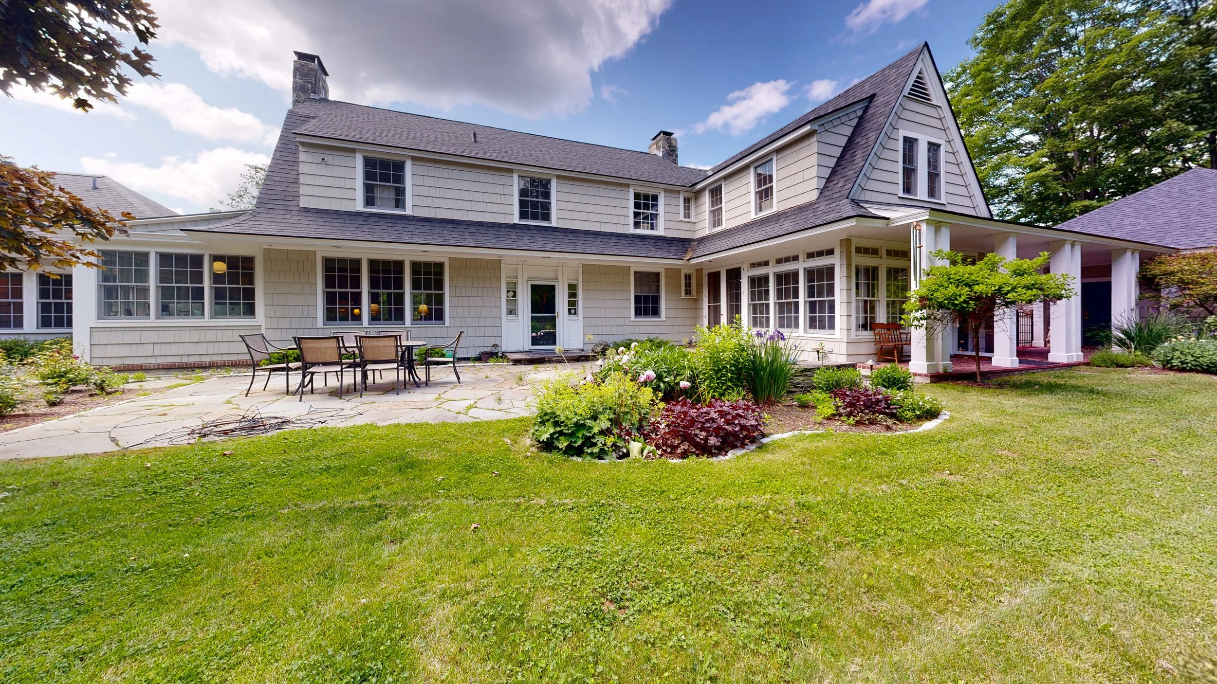 10 College Hill is the perfect in-village residence, off the main road yet walk-to-everything. The original, historic residence was designed in 1916 by renowned architect John Russell Pope whose accomplishments include the Jefferson Memorial, and master plans for Dartmouth and Yale. It also enjoys modern additions and updates including a stunning first-level primary bedroom suite designed in 2012 by the respected local architect David Bielman. The front door welcomes guests with a pair of dutch-doors in a center entrance foyer, flanked by a classic dining room and elegant living room (both with fireplaces). The classic butlers pantry leads to the gourmet kitchen and a wonderful, sunny eat-in breakfast area. There are 4 additional BRs upstairs, 2 have ensuite baths plus a 3rd hall bath. There are also powder baths on the first floor and in the lower (basement) area. All BRs have central air. Mechanicals have been updated and well-maintained. 2 other offices on 1st and 2nd floor, and the basement has living space, a workout room, safe room, and ample storage. Beyond the kitchen is a mud-laundry room that leads to the covered (heated) brick walkway from the garage. The 1.05 acre parcel has professionally designed and executed gardens, patios and stone walls including new stone steps that lead up to a second new stone patio that enjoys sweeping vistas across to Mt Tom and the Marsh-Billings-Rockefeller National park.
